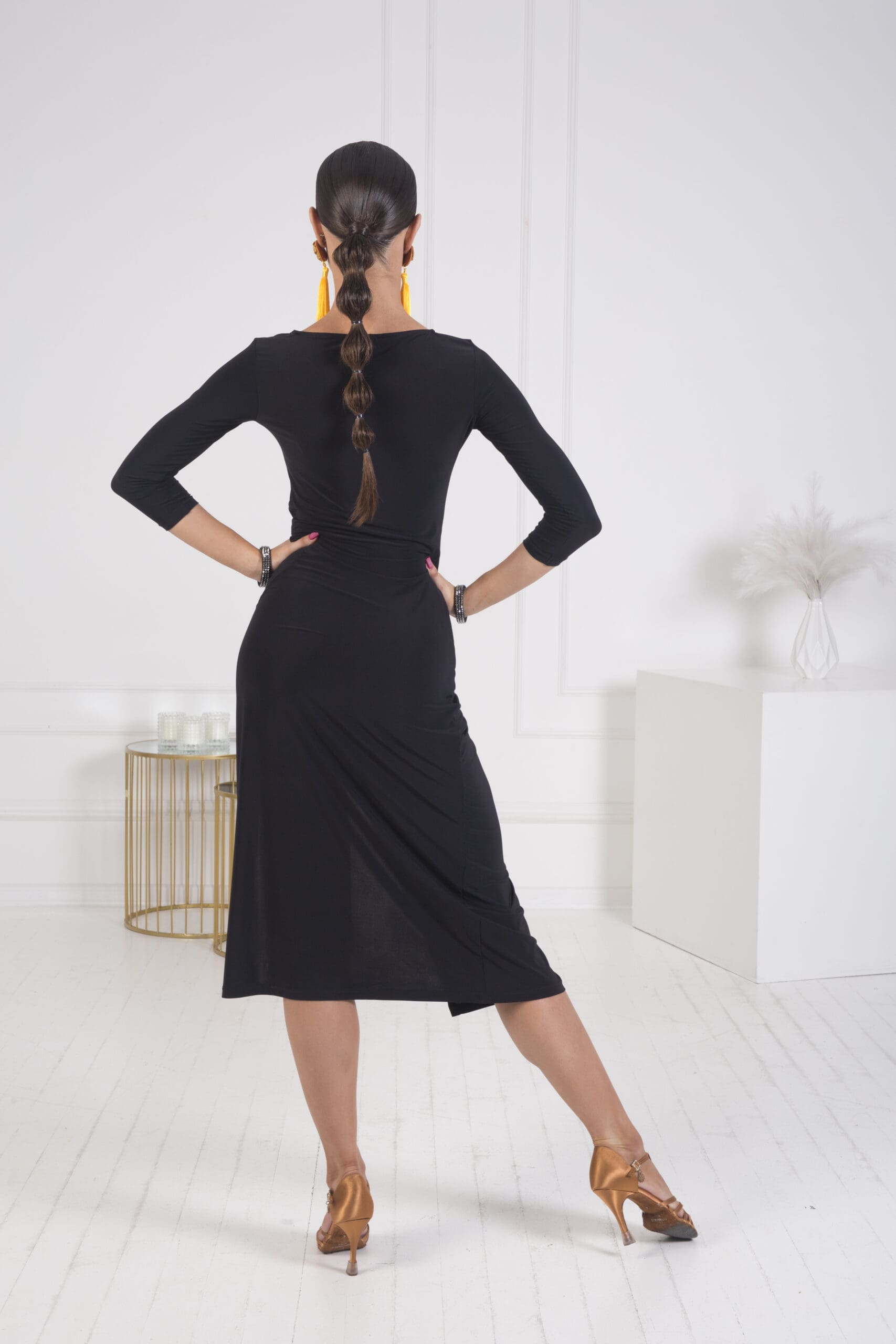 The Eisa is an elegant black dress designed for both Latin and Argentine tango dancing. This sophisticated piece features a flattering silhouette that enhances your movements on the dance floor.