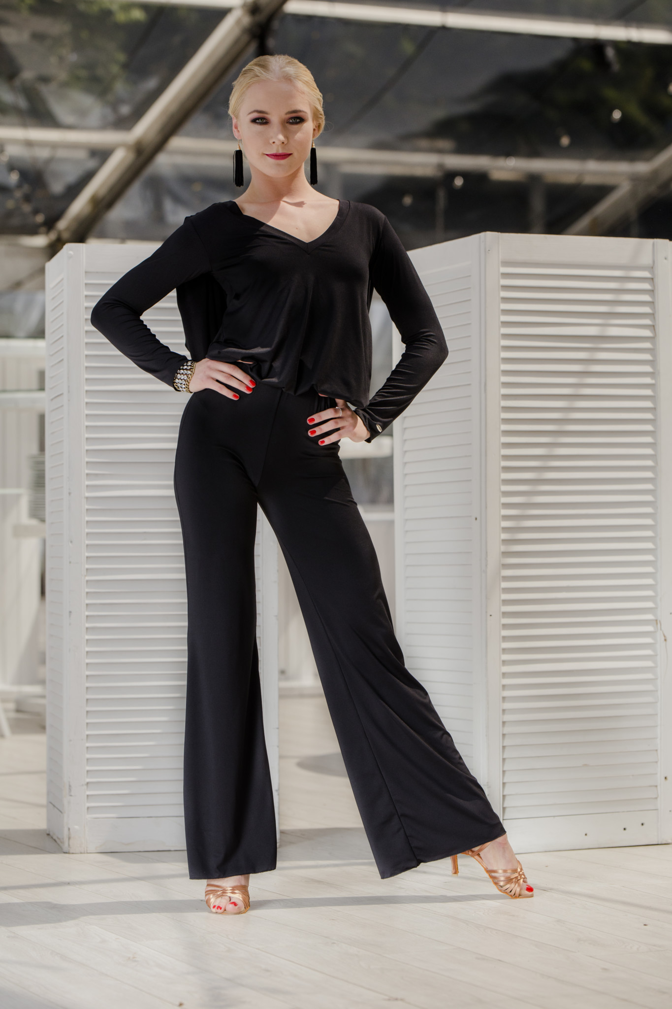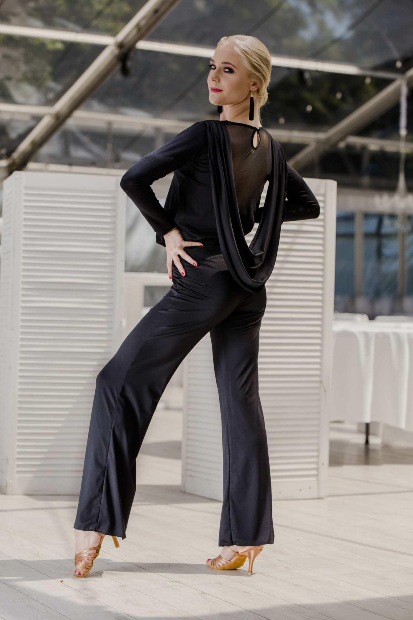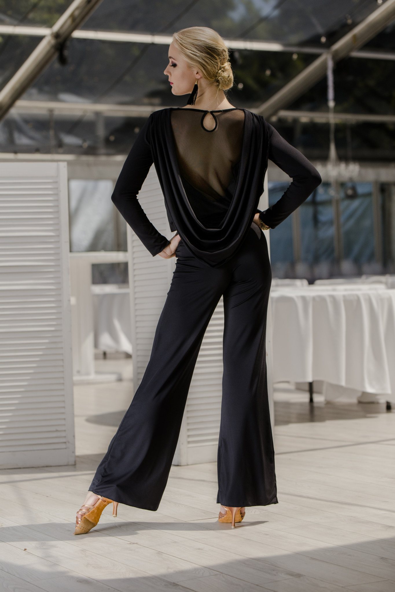 Jeżeli nie lubisz tańczyć w sukienkach, to mamy dla Ciebie idealne rozwiązanie. Kombinezon Forro pięknie podkreśla sylwetkę, dzięki bardzo dobrze skrojonym spodniom, które wydłużają linię nóg. Piękny tył wykończony siateczką oraz luźno puszczonym materiałem nadaje niesamowitej elegancji. Kombinezon nadaje się nie tylko do tańca, ale również na różnego rodzaju imprezy okolicznościowe, wieczorne wyjścia , eleganckie kolacje oraz różnego rodzaju imprezy taneczne. Forro to 100% komfortu, elegancji i szyku.
